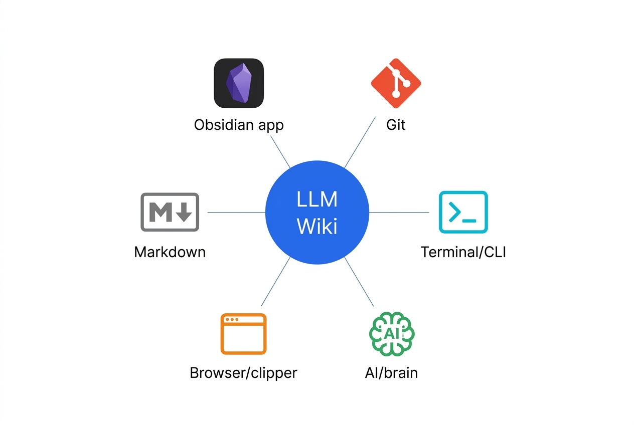 LLM Wikiを実装するために必要なツールは以下の通りだ。特別な商用サービスへの依存はなく、ローカル完結できる。