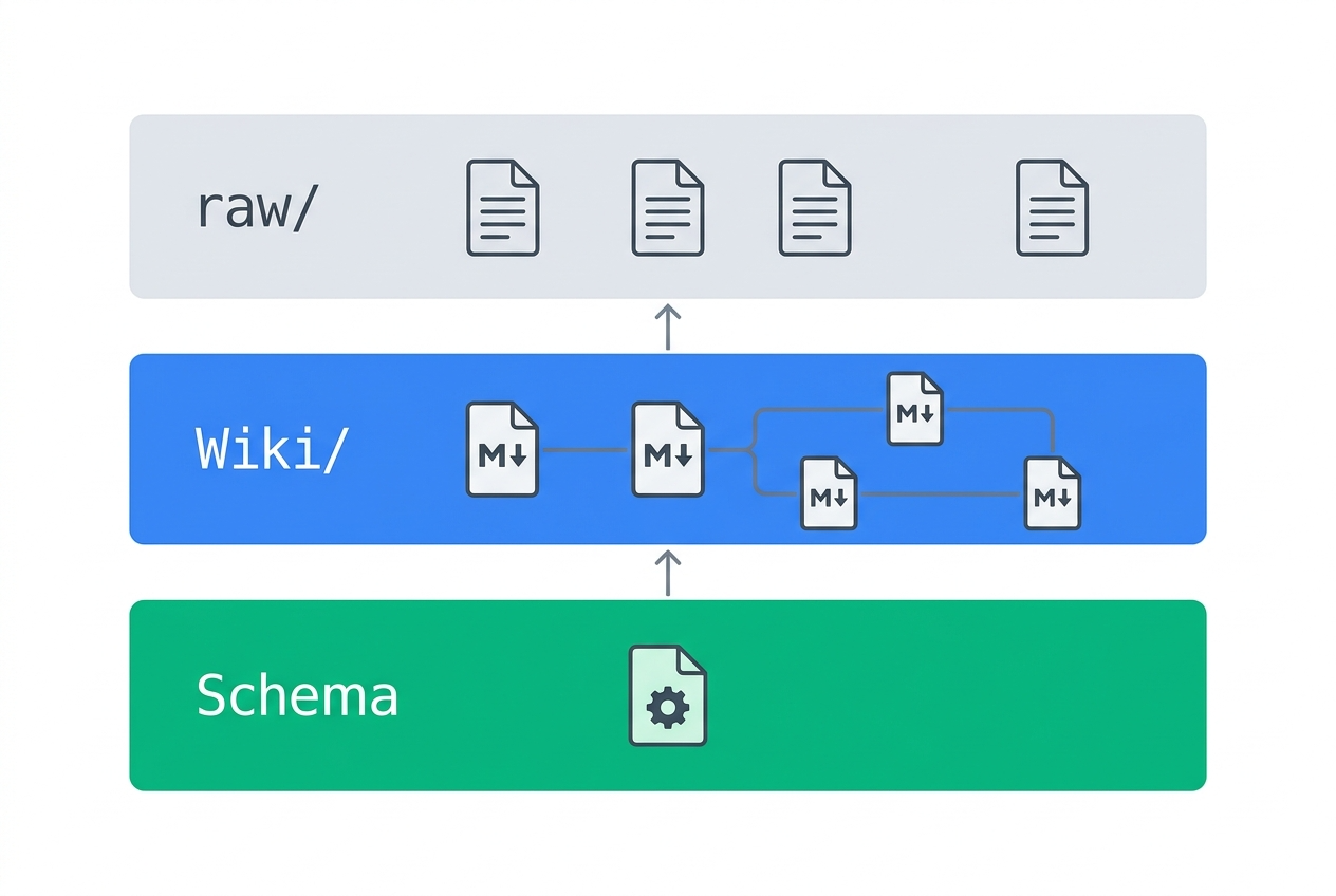 LLM Wikiは3つの層から構成される。
